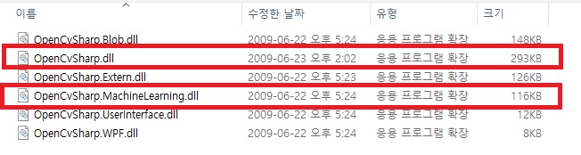 저는 OpenCvSharp 네이버 카페에 올려져 있는 최신버전의 라이브러리를 사용했구요