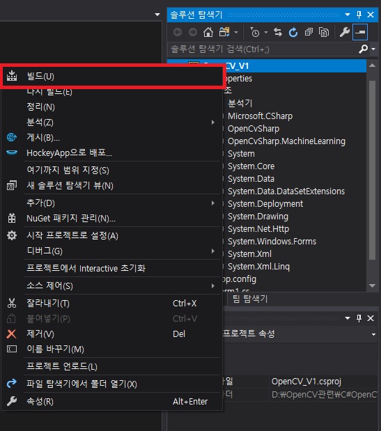 관련 정보를 한번 보시고 난뒤에 C#에서 OpenCV를 사용하기 위한 첫단계를 진행해보곘습니다