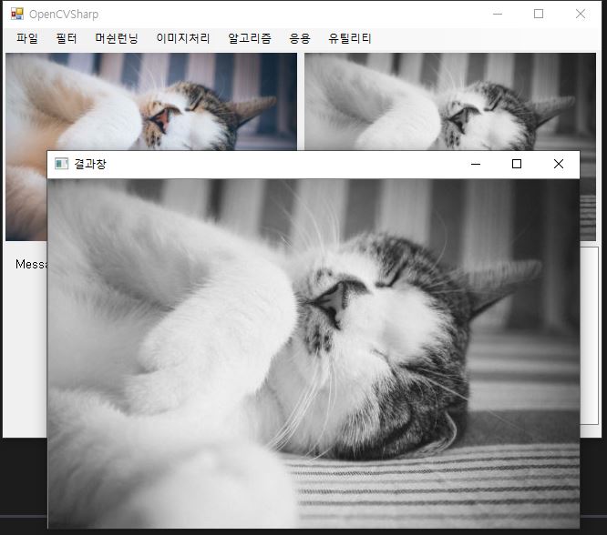 요즘 C#으로 연습중인 OpenCv에서 불러온 이미지에 전체 그레이 효과를 주는 이벤트를