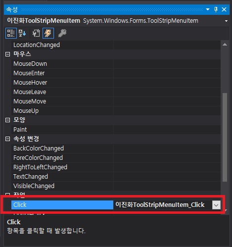 - 이벤트 위치에 다음과 같이 코딩해 줍니다
