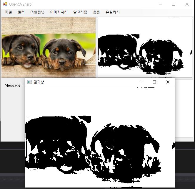 - 위의 과정을 모두 하셨다면 프로그램 실행한 후에 이미지를 불러온뒤에 이진화 버튼 클릭하면 변경 됩니다