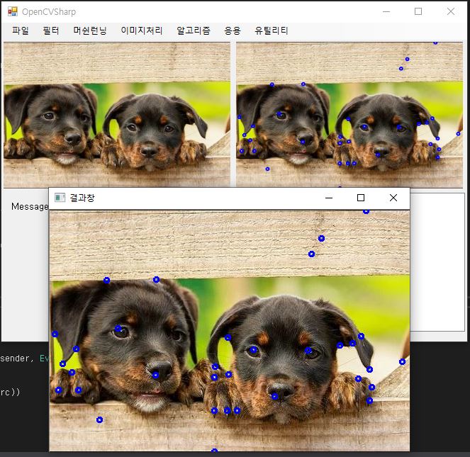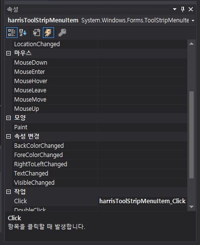 - EigenVal / Harris의 각각의 클릭 이벤트에 다음과 같은 코딩을 해줍니다