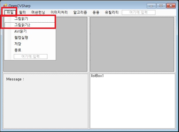 (그림읽기2 버튼은 pictureBoxIpl2(우측)에 이미지 넣기 용도)