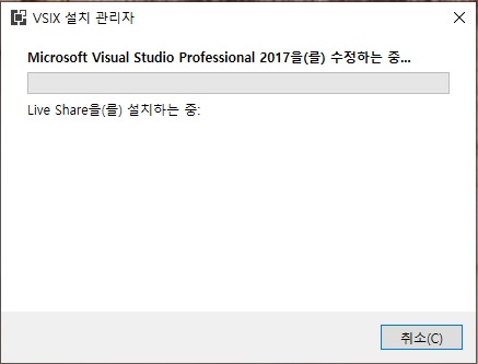 5. 비쥬얼 스튜디오 2017을 종료하고 나면 자동으로 기능 확장 설치가 진행 됩니다