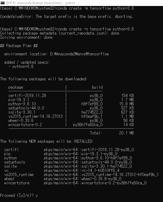 conda create -n 임의이름지정 python=3.6