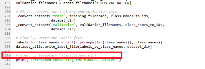 3. download_and_convert_data.py 파일 내용중 210번 줄의 내용을 주석 처리 합니다