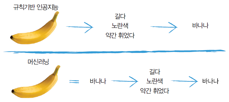 그림 1-2 규칙기반 인공지능과 머신러닝의 바나나 인식