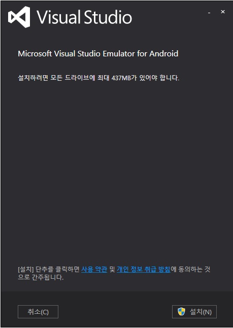 3. Microsoft Visual Studio Emulator for Android의 설치파일로 설치해 줍니다