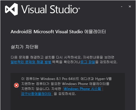 비쥬얼 스튜디오 에뮬레이더를 설치하는 과정에서 Hyper-V를 활성화 할 수 없다(?) 이런 오류가