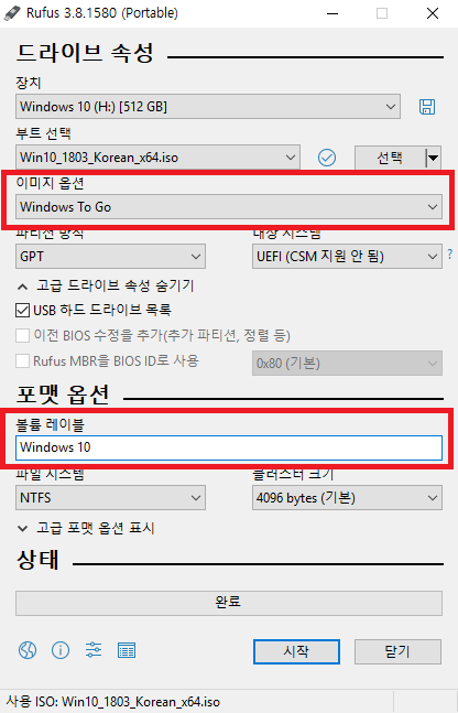 3. 이미지 옵션과 볼륨 레이블 명칭 변경