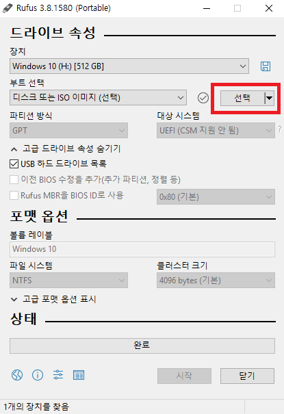 1. rufus를 실행합니다
