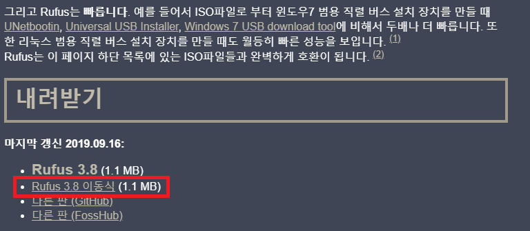 이렇게 RUFUS까지 다운로드를 받으면 준비물은 끝입니다
