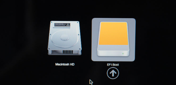 - 이상태에서 EFI Boot를 마우스로 선택후 control 버턴을 눌러주면 위쪽의 화살표가 회전하는 화살표로 변경됩니다