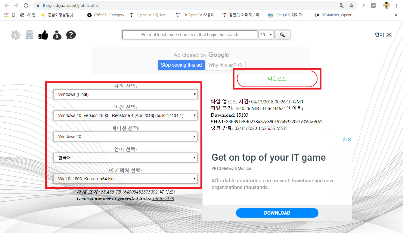 첫번째는 당연히 윈도우10 ISO 파일입니다