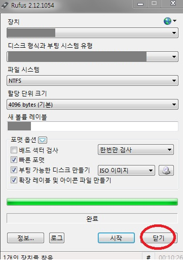 저의 경우에는 기존에 Rufus를 통해 이미 한번 사용한 하드 디스크의 경우 Rufus를 통해 포맷을 진행할 경우