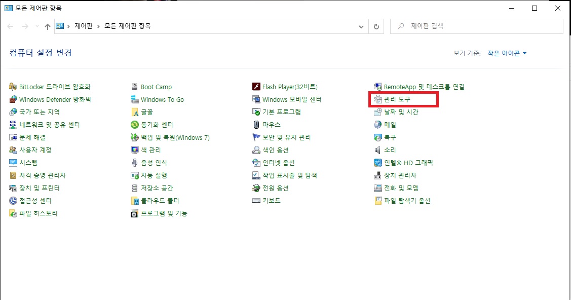 2. 제어판의 항목중 관리도구를 선택해 주세요