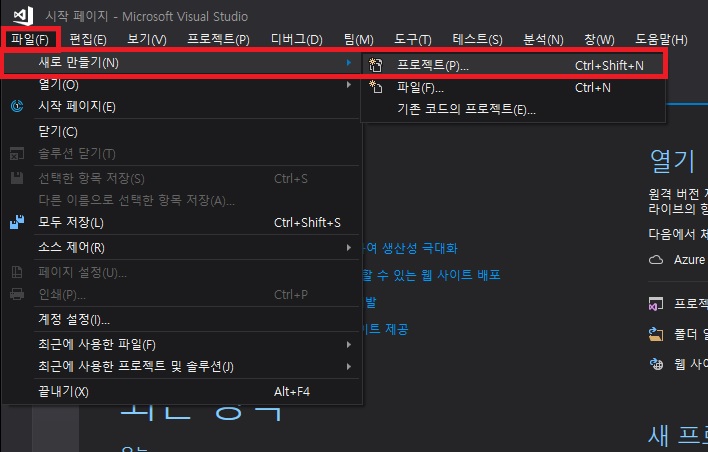 - 파일 -> 새로만들기 -> 프로젝트