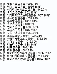 반응형 분류 전체보기329 [주가분석요약] 2021.03.16_프로그램을 활용한 주식분석_예상결과(09:35:15) * 현재 개발 중인 주식 분석 프로그램 실행 결과 값입니다 이 자료는 주식 투자 목적이 아닌 프로그램 분석율 계산을 위한 값이므로 절대 신뢰하지 마세요 (이자료를 통한 투자 손해에 대해 필자는 배상하지 않습니다) ※ 해당 정보는 프로그램 결과값이 정리하여 자동으로 포스팅되는 글라는 점을 참고해 주세요 (2021-03-16프로그램이 자동으로 포스팅한 자료 입니다) ▣2021-03-16_급등 주가 리스트(현재 기준 지난 30일간 주가가 10배 이상 급등한 주가 리스트입니다) ▣2021-03-16_매수 예상 종목(프로그램에서 모의 투자시 승률이 가장 좋은 리스트 입니다) ▣ 매수 종목 종가 리스트(과거 데이터를 이용하여 텐서플로워를 통해 최종 예상 종가를 예측한 값입니다)(신뢰성은 매우 낮습니다ㅠ 뭔가 알고리.. 2021. 3. 16. [주가분석요약] 2021.03.11_프로그램을 활용한 주식분석_예상결과(20:22:02) * 현재 개발 중인 주식 분석 프로그램 실행 결과 값입니다 이 자료는 주식 투자 목적이 아닌 프로그램 분석율 계산을 위한 값이므로 절대 신뢰하지 마세요 (이자료를 통한 투자 손해에 대해 필자는 배상하지 않습니다) ※ 해당 정보는 프로그램 결과값이 정리하여 자동으로 포스팅되는 글라는 점을 참고해 주세요 (2021-03-11프로그램이 자동으로 포스팅한 자료 입니다) ▣2021-03-11_급등 주가 리스트(현재 기준 지난 30일간 주가가 10배 이상 급등한 주가 리스트입니다) ▣2021-03-11_매수 예상 종목(프로그램에서 모의 투자시 승률이 가장 좋은 리스트 입니다) ▣ 매수 종목 종가 리스트(과거 데이터를 이용하여 텐서플로워를 통해 최종 예상 종가를 예측한 값입니다)(신뢰성은 매우 낮습니다ㅠ 뭔가 알고리.. 2021. 3. 11. [AI 투자 분석] 21.03.10_AI 모의 투자 현황 안녕하세요~ 코딩연습생입니다 어제 AI 모의 투자 현황에서 오늘 장시작과 동시에 많은 변화가 있네요 https://codingman.tistory.com/217 [AI 투자 분석] 21.03.09_AI 모의 투자 현황안녕하세요 코딩 연습생입니다~ 딥러닝을 통한 주가 예측, 투자 실행 프로그램을 통해 정보 공유를 하고 있는데요 실제 키움증권의 모의 투자를 사용해서 프로그램을 실행시키고 있습니다 실제codingman.tistory.com총 수익률이 0.16%로 였는데 오늘 장 시작과 함께 어떻게 되었을까요?? 3월10일 장시작과 함께 들어갔던 1) 태양금속공업2) 현대건설기계3) 원풍물산4) 파세코5) 한일화학6) 신송홀딩스7) 큐로8) 게임빌 이렇게 8개 종목을 AI가 찍어주었는데 11일 장시작과 함.. 2021. 3. 11. [주가분석요약] 2021.03.10_프로그램을 활용한 주식분석_예상결과(21:35:44) * 현재 개발 중인 주식 분석 프로그램 실행 결과 값입니다 이 자료는 주식 투자 목적이 아닌 프로그램 분석율 계산을 위한 값이므로 절대 신뢰하지 마세요 (이자료를 통한 투자 손해에 대해 필자는 배상하지 않습니다) ※ 해당 정보는 프로그램 결과값이 정리하여 자동으로 포스팅되는 글라는 점을 참고해 주세요 (2021-03-10프로그램이 자동으로 포스팅한 자료 입니다) ▣2021-03-10_급등 주가 리스트(현재 기준 지난 30일간 주가가 10배 이상 급등한 주가 리스트입니다) ▣2021-03-10_매수 예상 종목(프로그램에서 모의 투자시 승률이 가장 좋은 리스트 입니다) ▣ 매수 종목 종가 리스트(과거 데이터를 이용하여 텐서플로워를 통해 최종 예상 종가를 예측한 값입니다)(신뢰성은 매우 낮습니다ㅠ 뭔가 알고리.. 2021. 3. 10. [AI 투자 분석] 21.03.09_AI 모의 투자 현황 안녕하세요 코딩 연습생입니다~ 딥러닝을 통한 주가 예측, 투자 실행 프로그램을 통해 정보 공유를 하고 있는데요 실제 키움증권의 모의 투자를 사용해서 프로그램을 실행시키고 있습니다 실제 투자를 위해 계속 보정 보정 중인데.. 아마 제 글을 보시는 분들도 이거 믿어도 되?? 신뢰할수 있어?? 이런 의구심을 많으 품우실듯 합니다ㅎㅎ 그래서 제가 제공해 드리는 정보를 토대로 모의투자를 실행해 그 결과를 일일별로 스크랩핑 해 드릴려고 합니다 ▣ 모의투자 결과 : 03월 09일자 투자 예측 정보에 의한 모의투자 실행 (03월 10일 장시작전 전일 모의투자 결과) 시장가보다 지정가 자동 매수를 해야 그나마 수익이 발생하는듯 합니다 급등주에 의한 분석을 진행하다 보니 정치 테마주가 많이 올라 오는듯 합니.. 2021. 3. 10. [주가분석요약] 2021.03.10_프로그램을 활용한 주식분석_예상결과(07:20:10) * 현재 개발 중인 주식 분석 프로그램 실행 결과 값입니다 이 자료는 주식 투자 목적이 아닌 프로그램 분석율 계산을 위한 값이므로 절대 신뢰하지 마세요 (이자료를 통한 투자 손해에 대해 필자는 배상하지 않습니다) ※ 해당 정보는 프로그램 결과값이 정리하여 자동으로 포스팅되는 글라는 점을 참고해 주세요 (2021-03-10프로그램이 자동으로 포스팅한 자료 입니다) ▣2021-03-10_급등 주가 리스트(현재 기준 지난 30일간 주가가 10배 이상 급등한 주가 리스트입니다) ▣2021-03-10_매수 예상 종목(프로그램에서 모의 투자시 승률이 가장 좋은 리스트 입니다) ▣ 매수 종목 종가 리스트(과거 데이터를 이용하여 텐서플로워를 통해 최종 예상 종가를 예측한 값입니다)(신