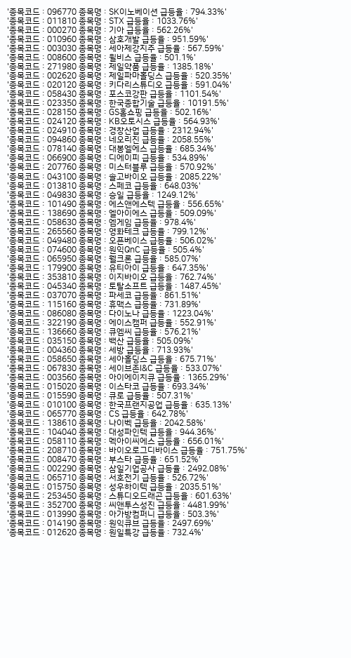 (현재 기준 지난 30일간 주가가 10배 이상 급등한 주가 리스트입니다)
